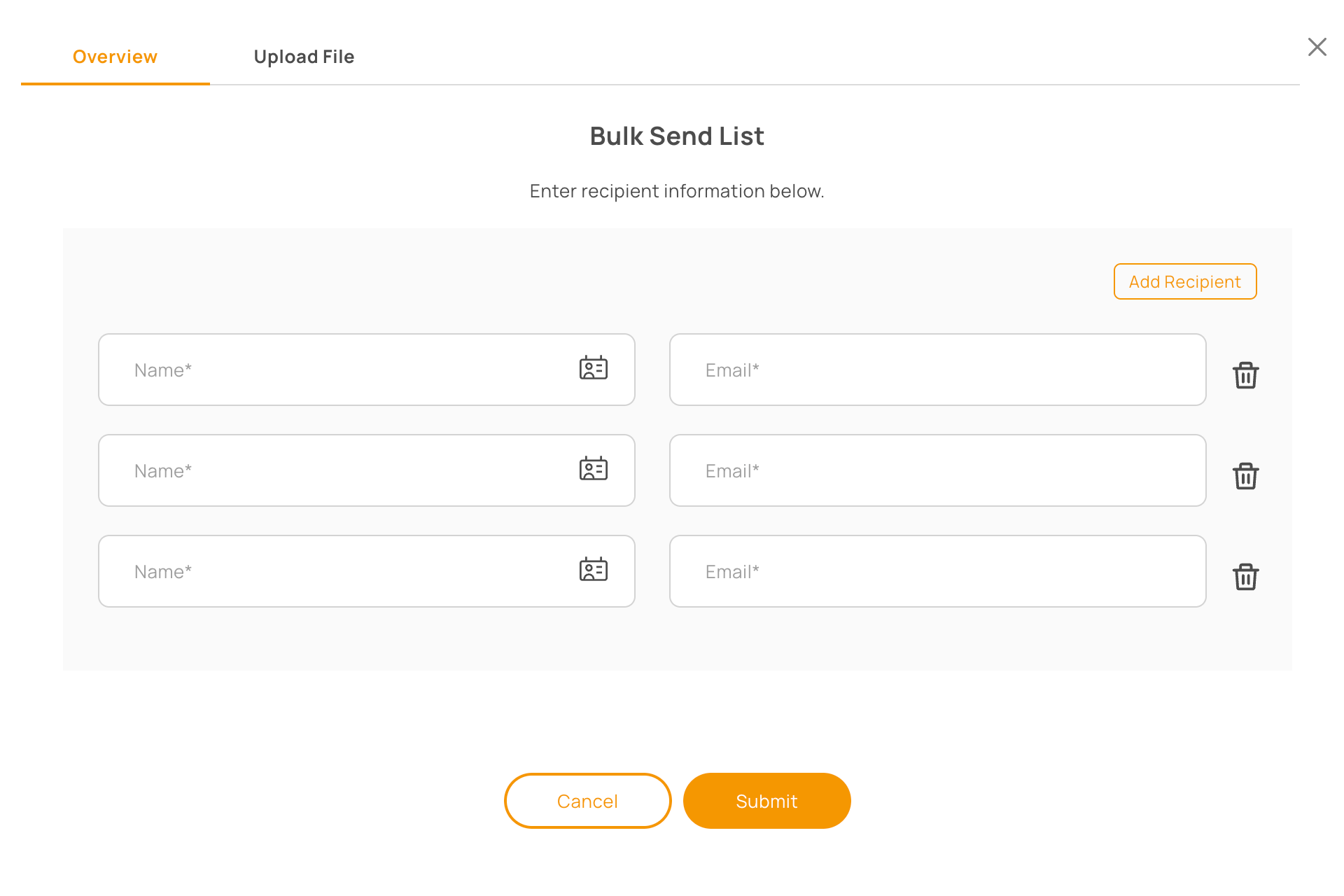 You can add recipients by manually entering their information.