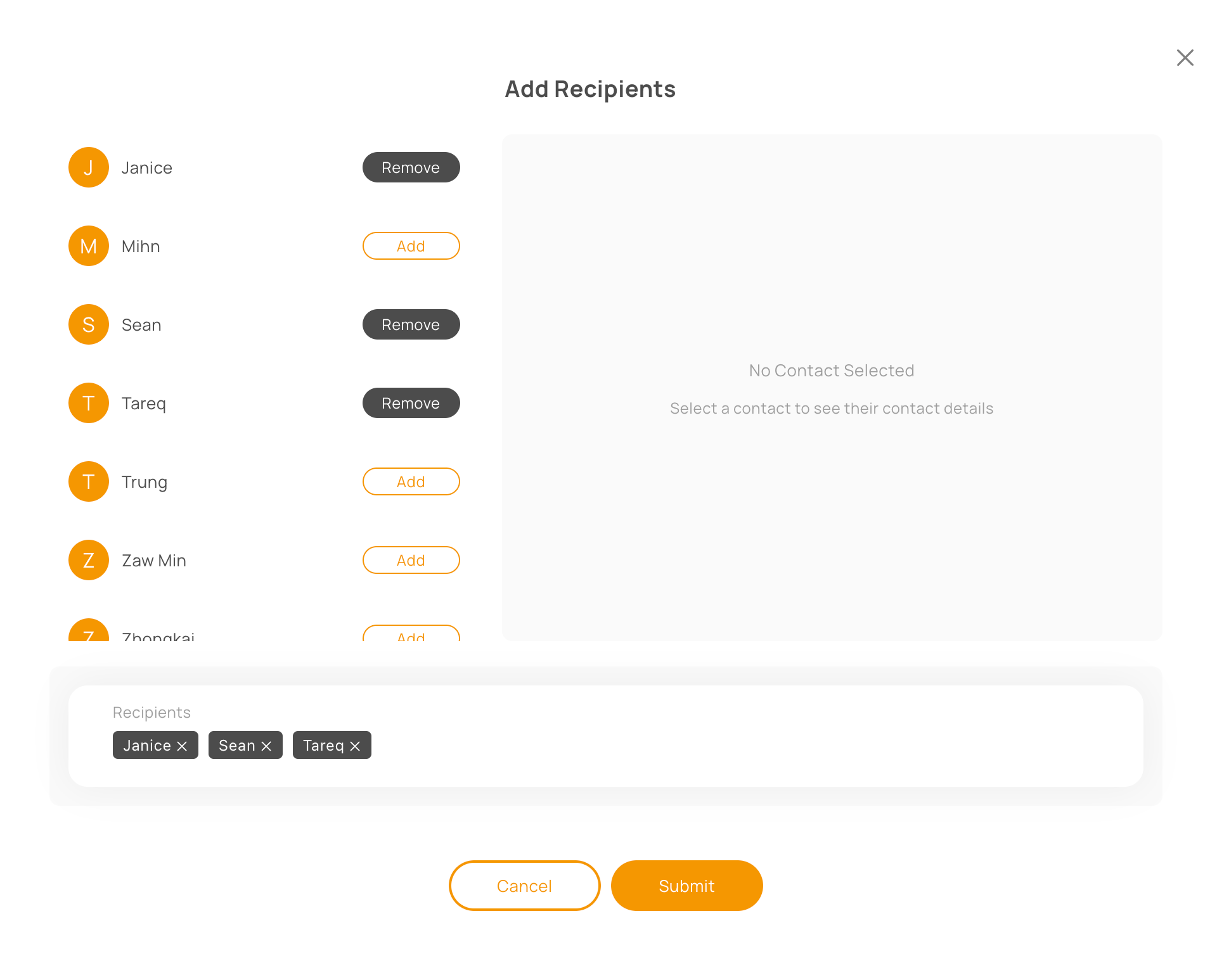 Or by selecting recipients from your contact list.