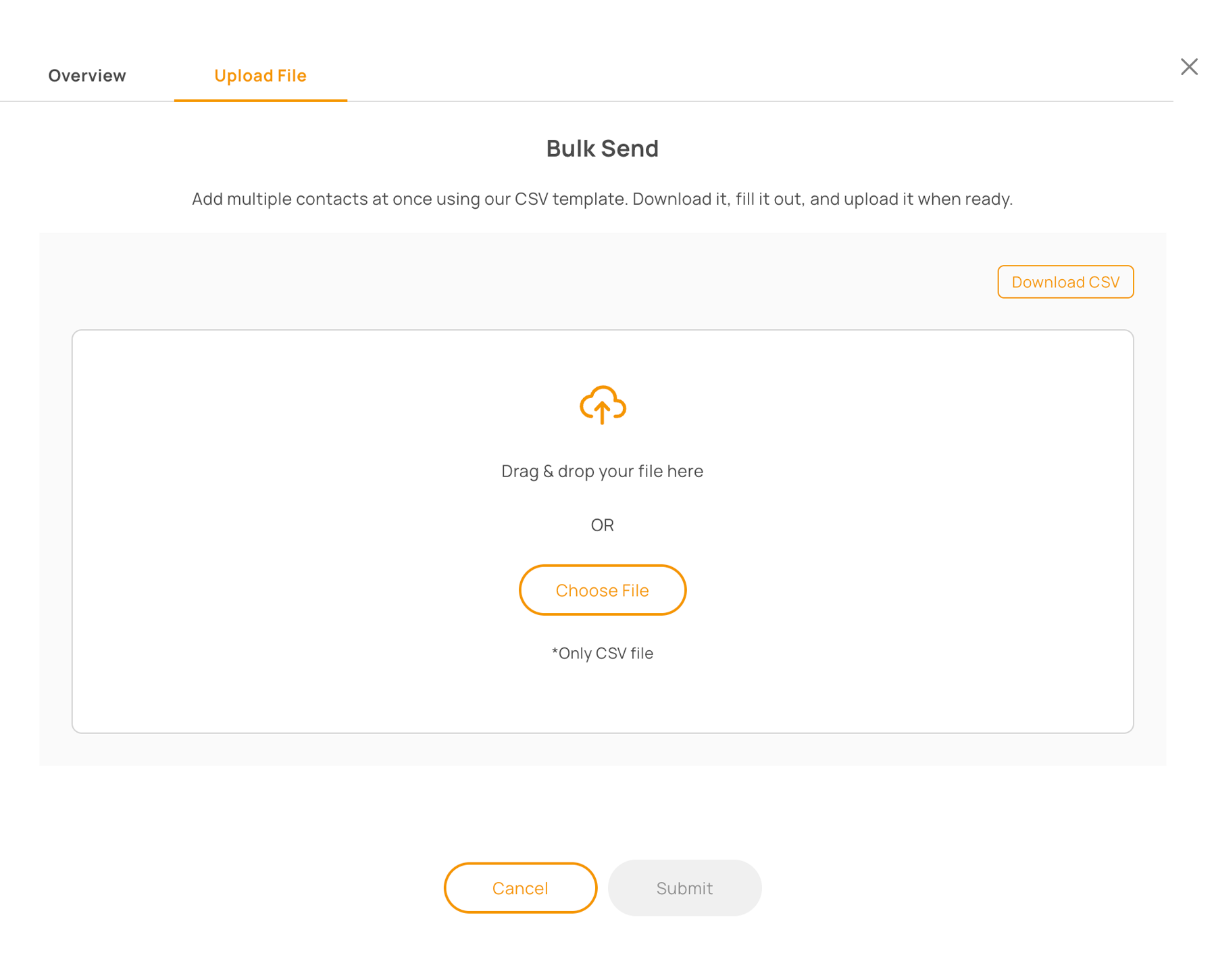 Or download the CSV template and upload a completed CSV file.