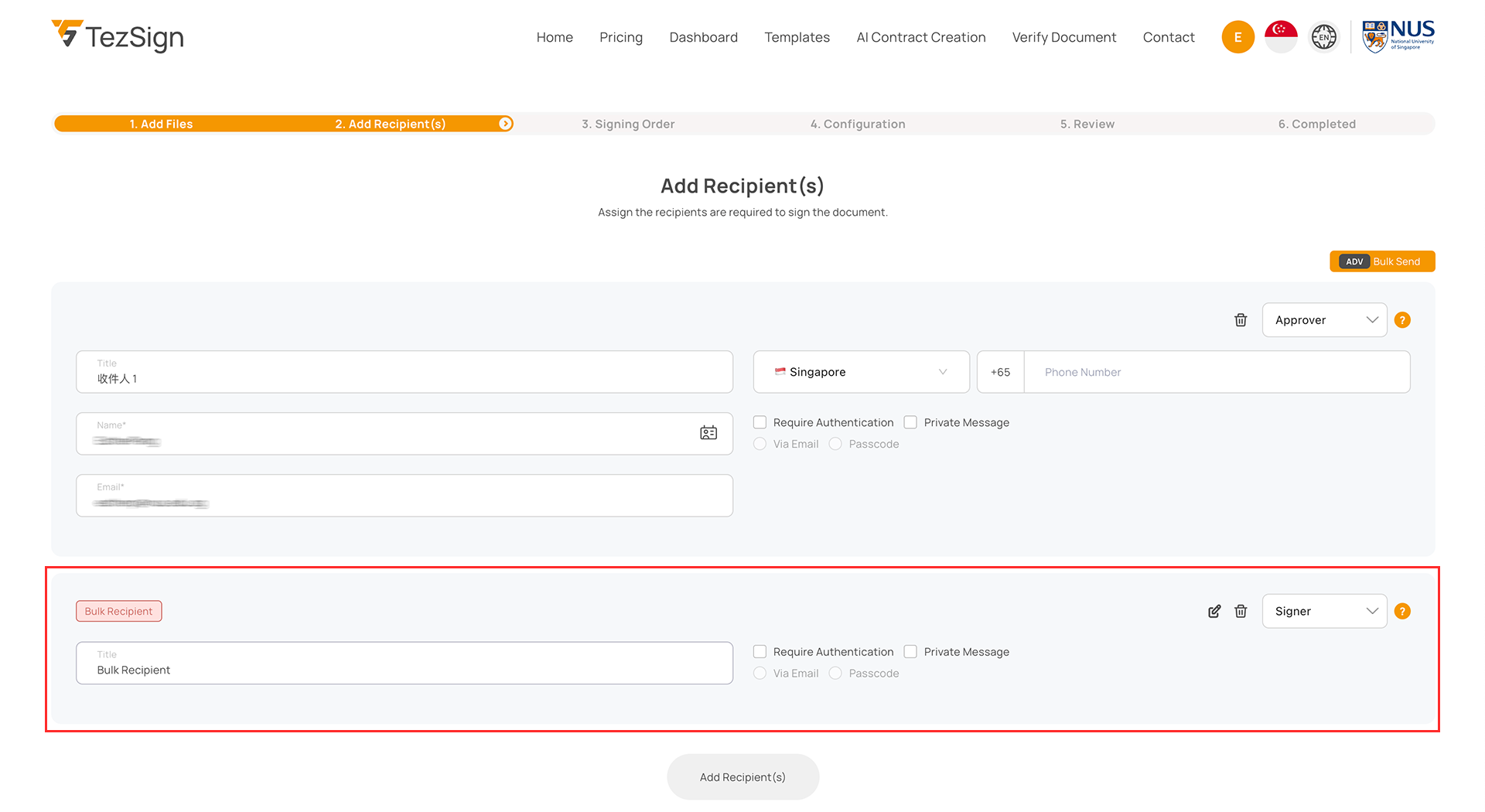 The bulk recipients are successfully added.