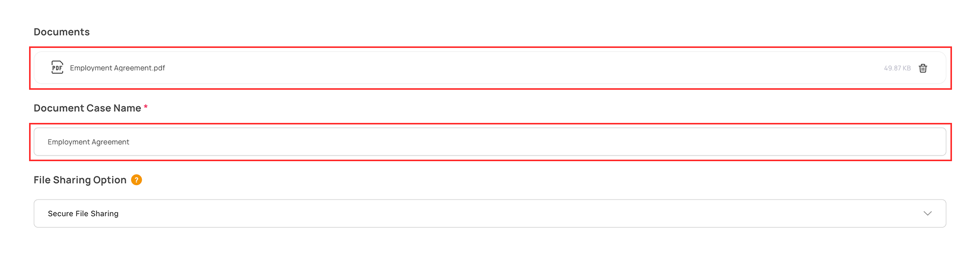 After uploading the files, the 'Document Case Name' will be auto-generated. You may amend it if needed.