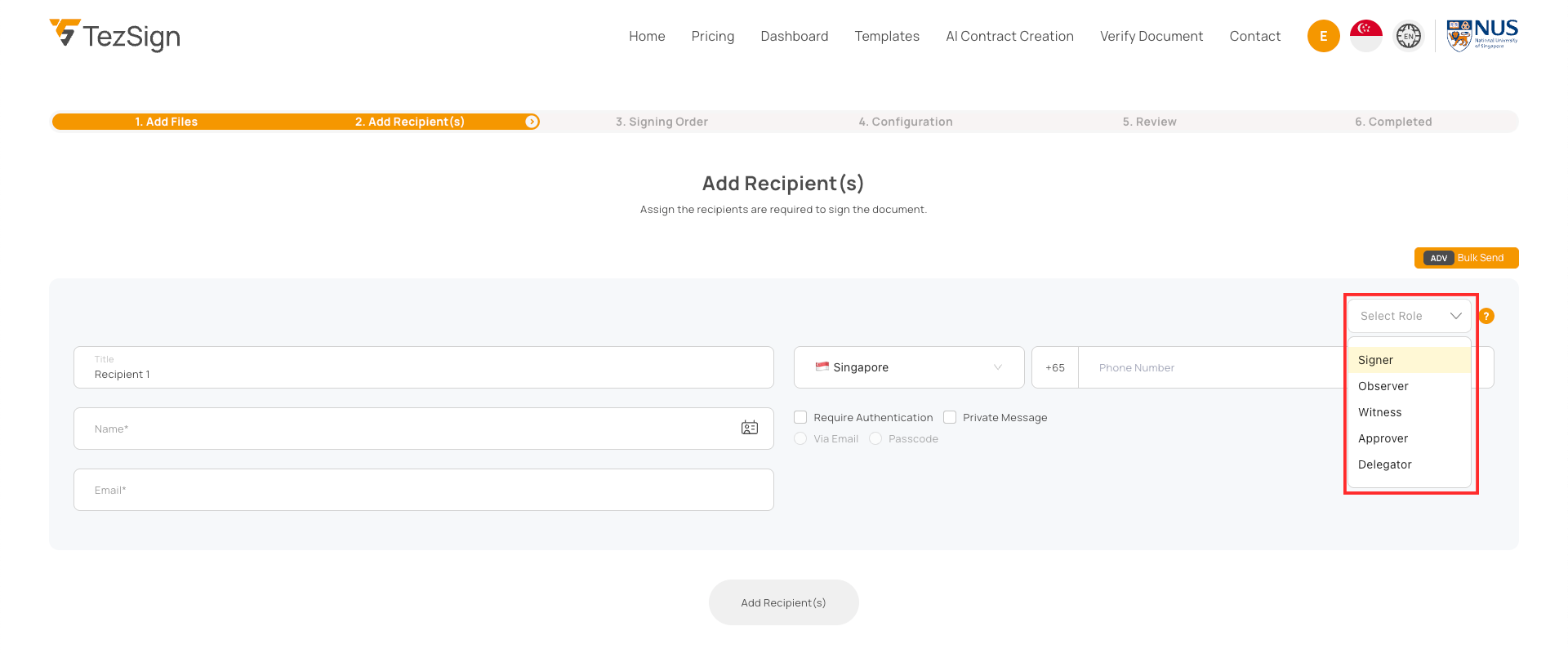 Under 'Add Recipients', click on 'Select Role' and choose the role from the dropdown list.