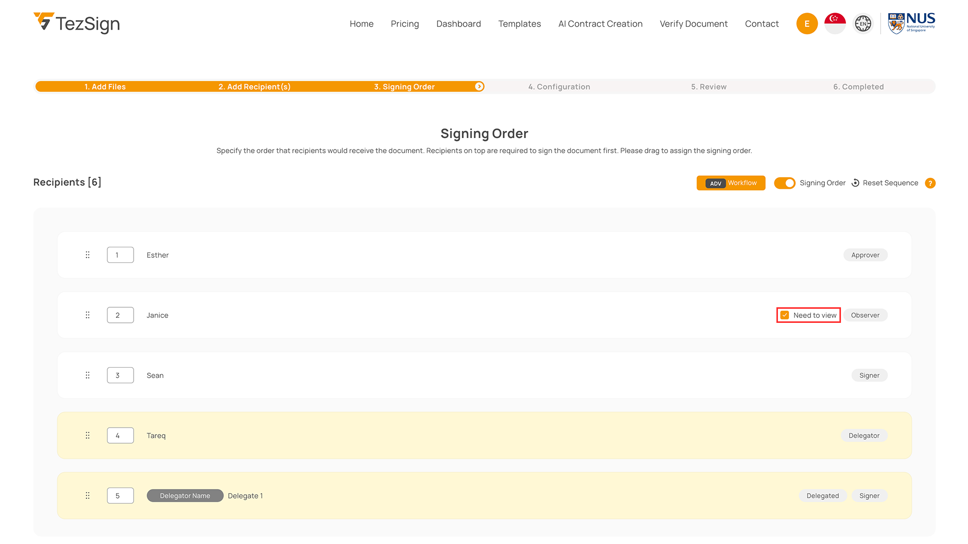 Adjust the signing order by dragging and assigning accordingly, or by changing the sequence number.