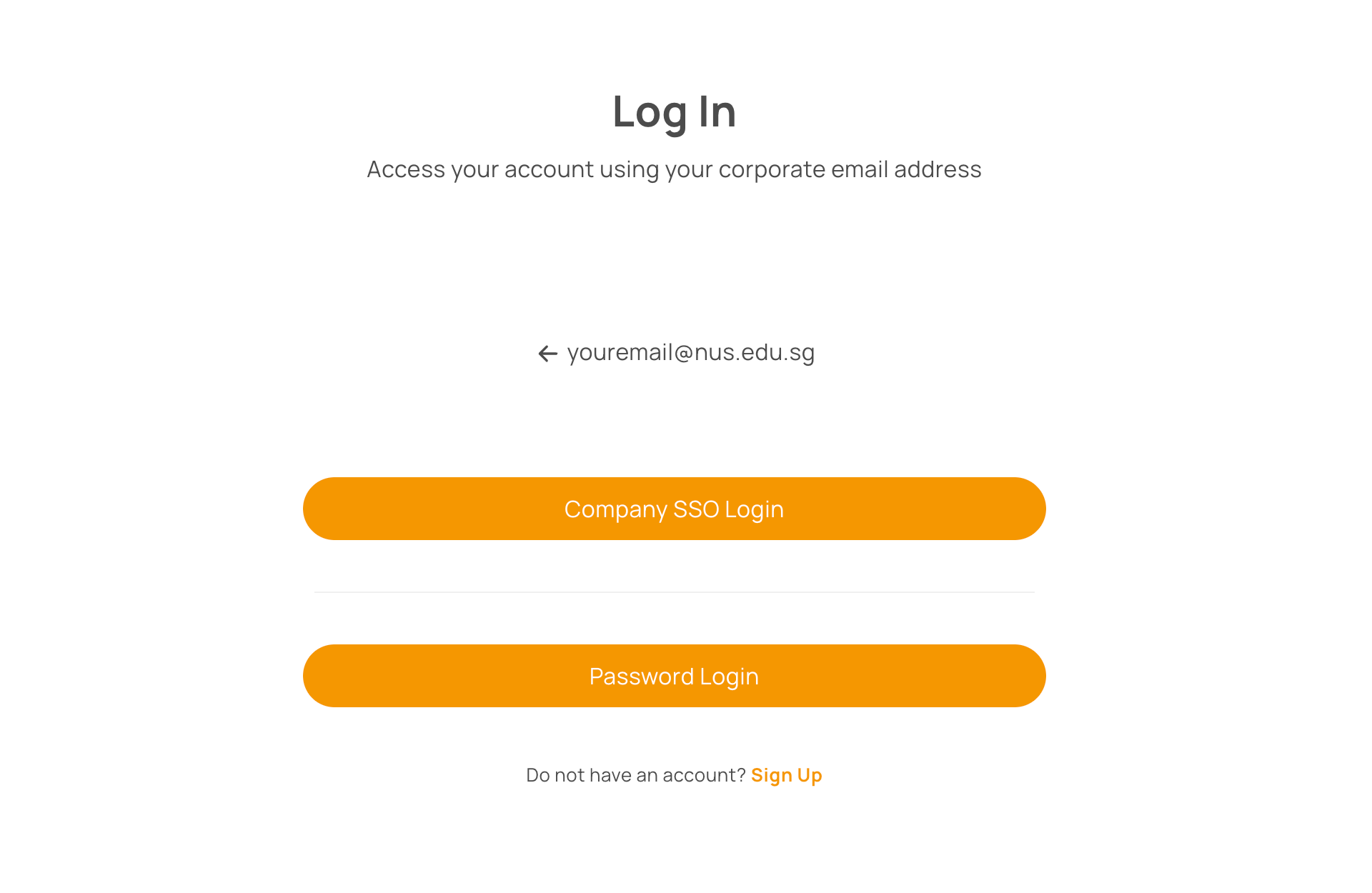 Individual account users can log in using their email address, or Single Sign-On (SSO). Additionally, users with an NUS corporate account can log in using NUS Single Sign-On (SSO).