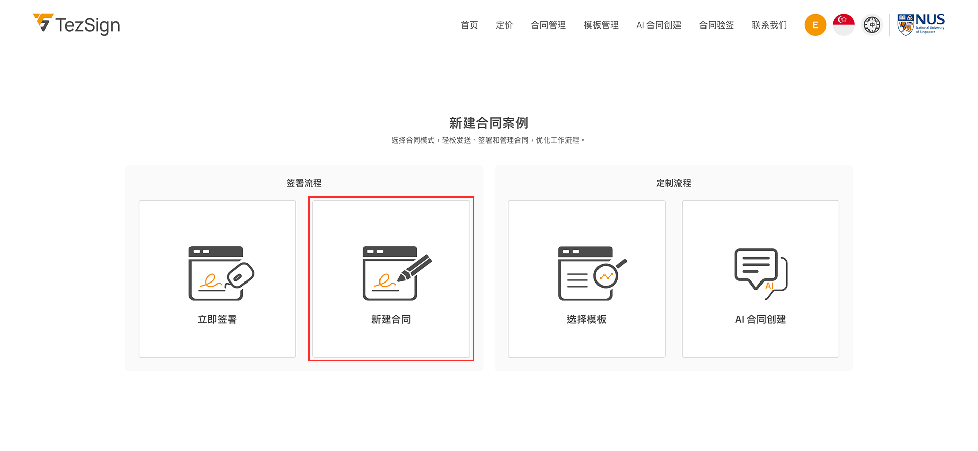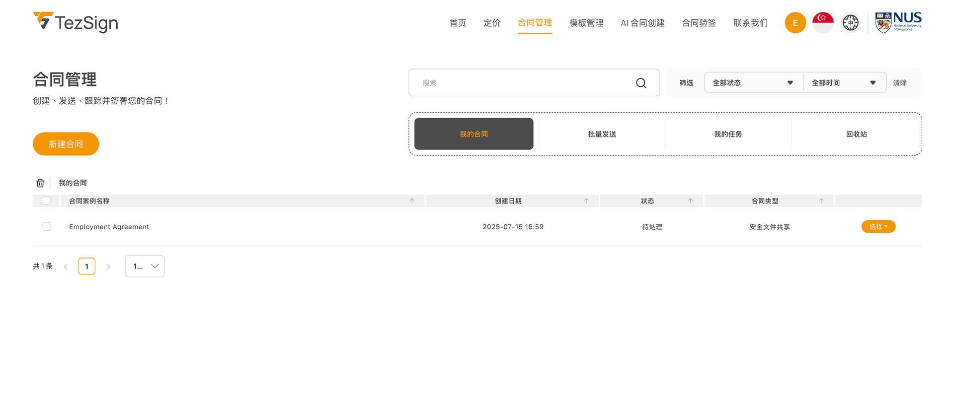 点击“新建合同”可创建全新的合同。