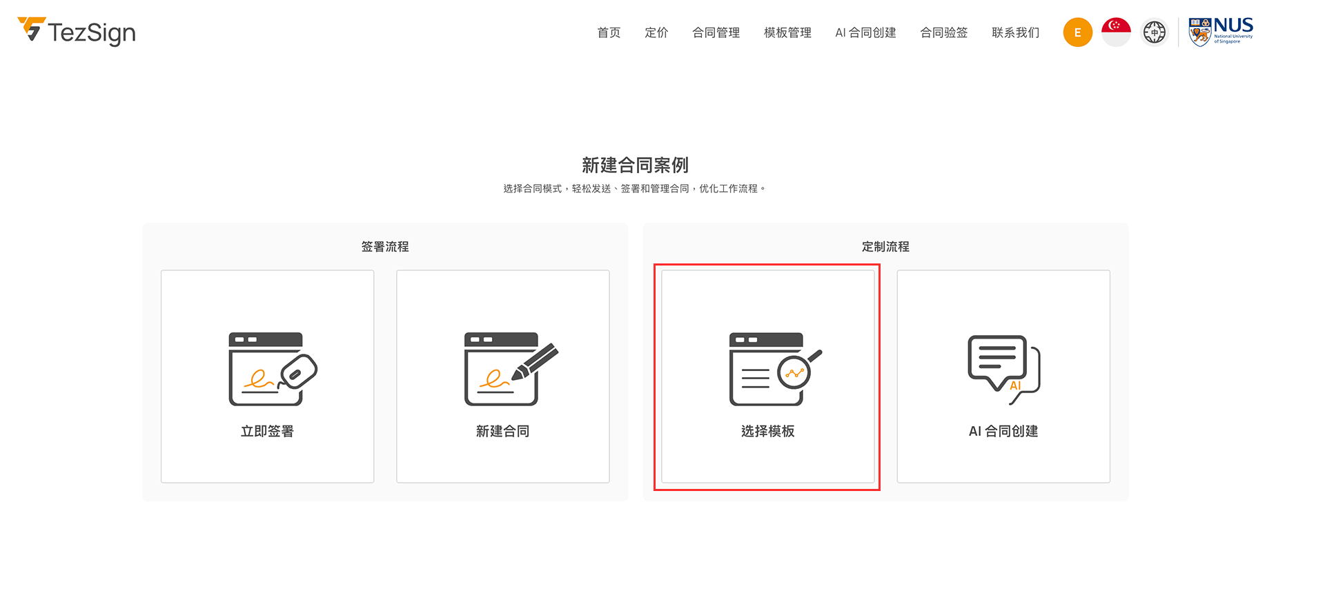 或点击“选择模板”,从现有模板列表中挑选。