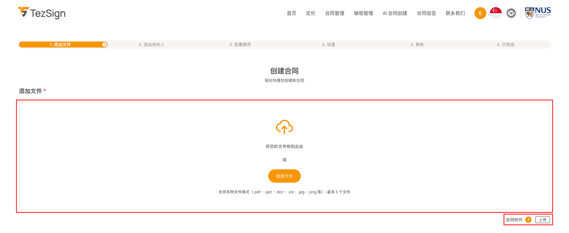 上传合同,点击上传“附件文件”。