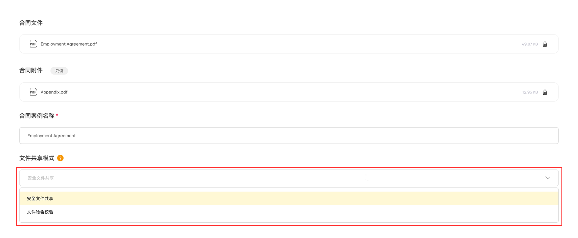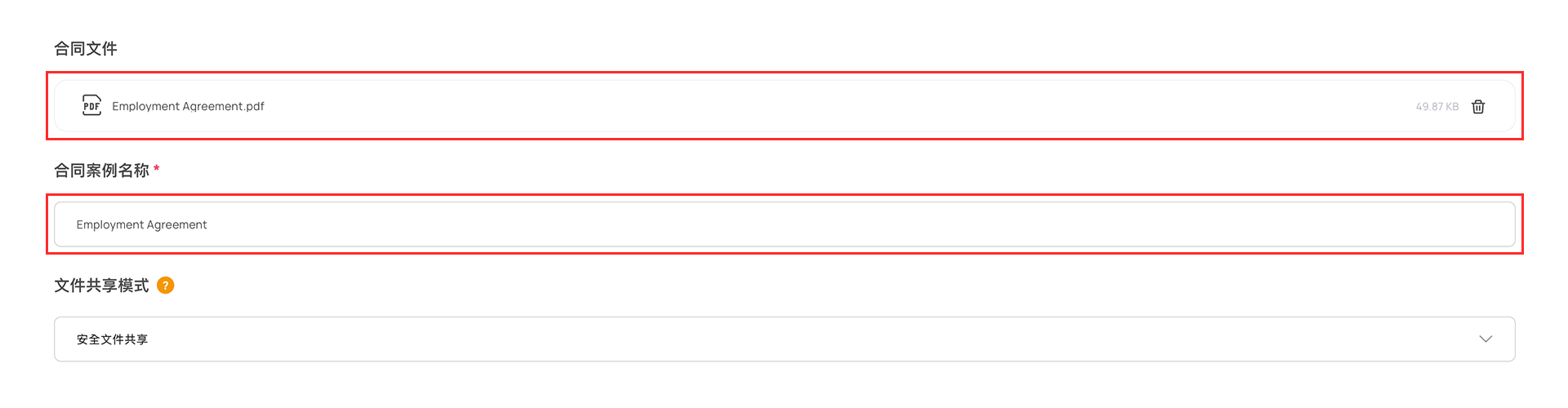 合同上传后,“合同案例名称”将自动生成,您可根据需要修改。