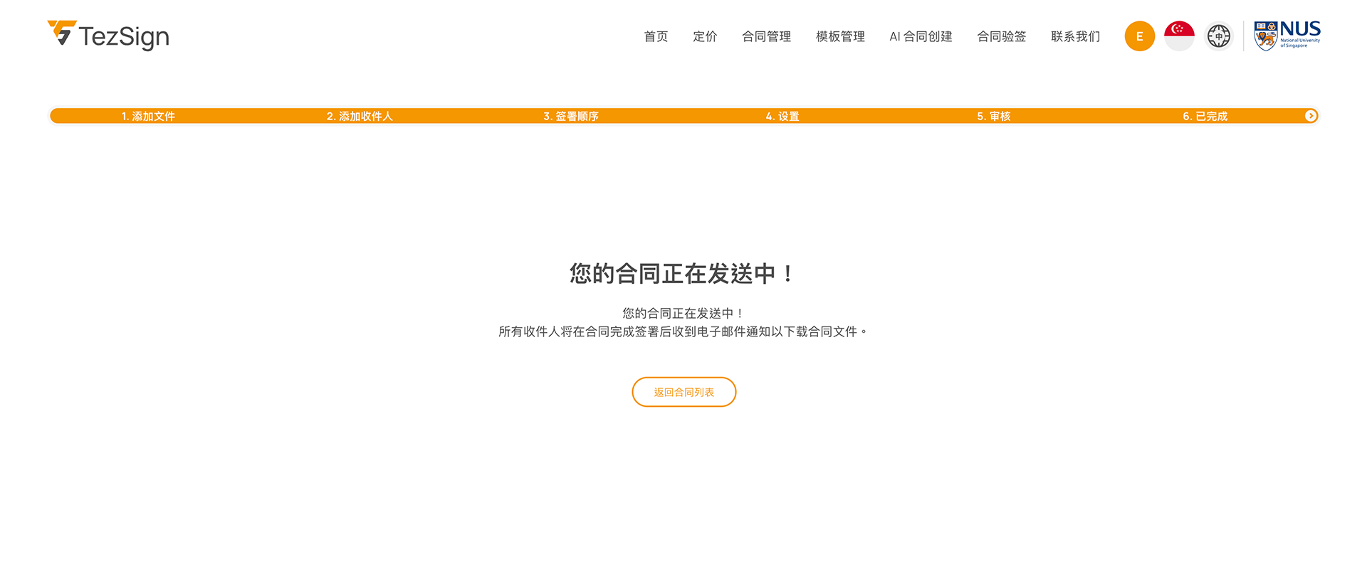 合同发送成功后,您将收到确认邮件。